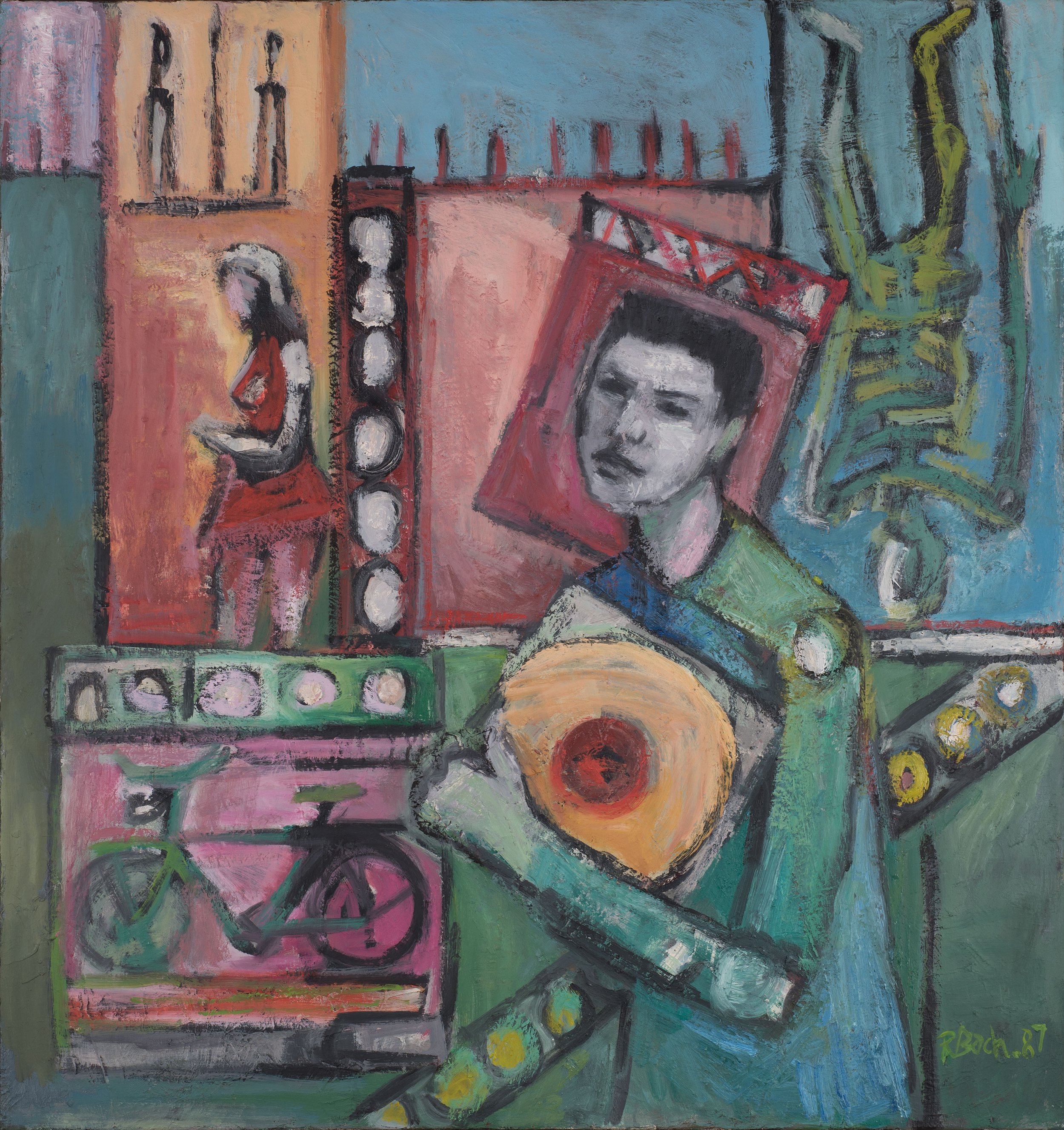 "Selbstbildnis mit Kopfhörer", 1987, oil on canvas, 135×96cm, CHF 4600.-